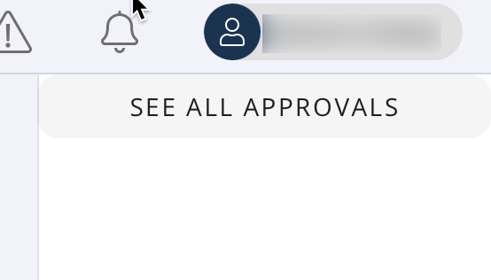 If an order needs your approval for some reason, you will receive a notification. You can easily see your approval requests using the Approvals icon at the top right of the Dashboard screen. Click the Approvals icon to the left of the Profile icon: