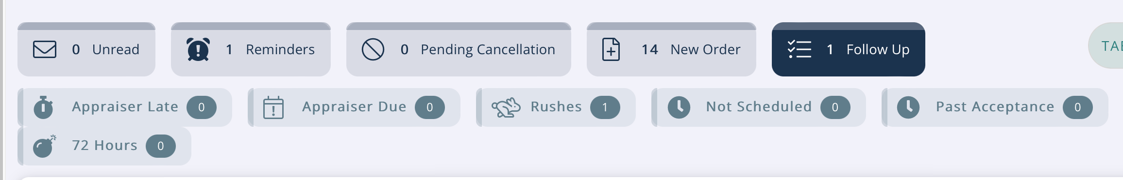 The Dashboard screen is designed to help you both view orders and accomplish tasks that are assigned to you. One of the best ways to navigate your tasks and orders is by using the Dashboard Queue Tabs: