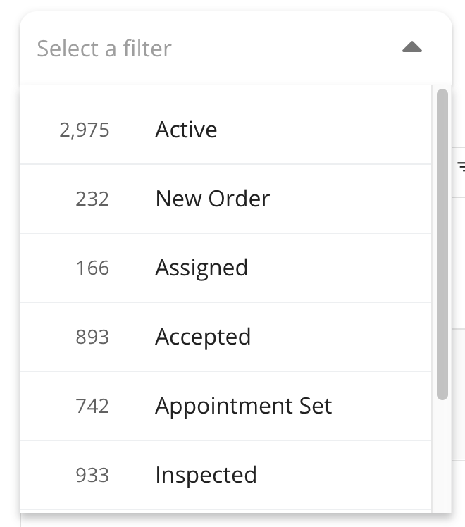 Select from one of the many options including Active, New Order, Assigned, Accepted, and more: